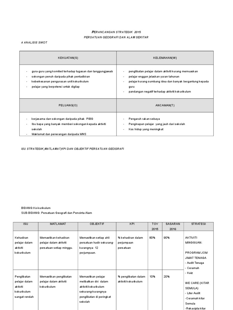 Perancangan Strategik Persatuan Geo Dan Alam Sekitar 2016