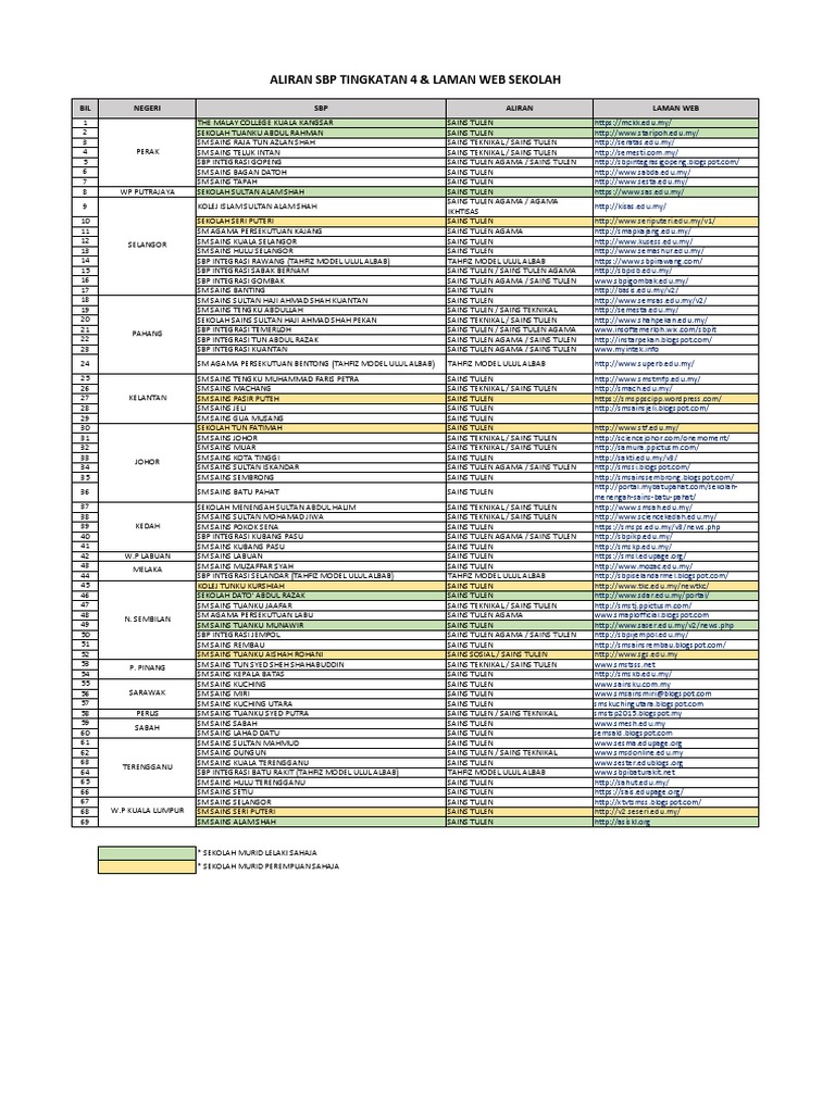Senarai Sbp Di Malaysia Sekolah Berasrama Penuh Semakan My