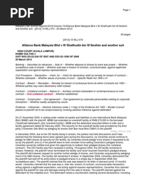 Alliance Bank Malaysia Bhd V W Shalihudin Bi 1 Damages Declaratory Judgment