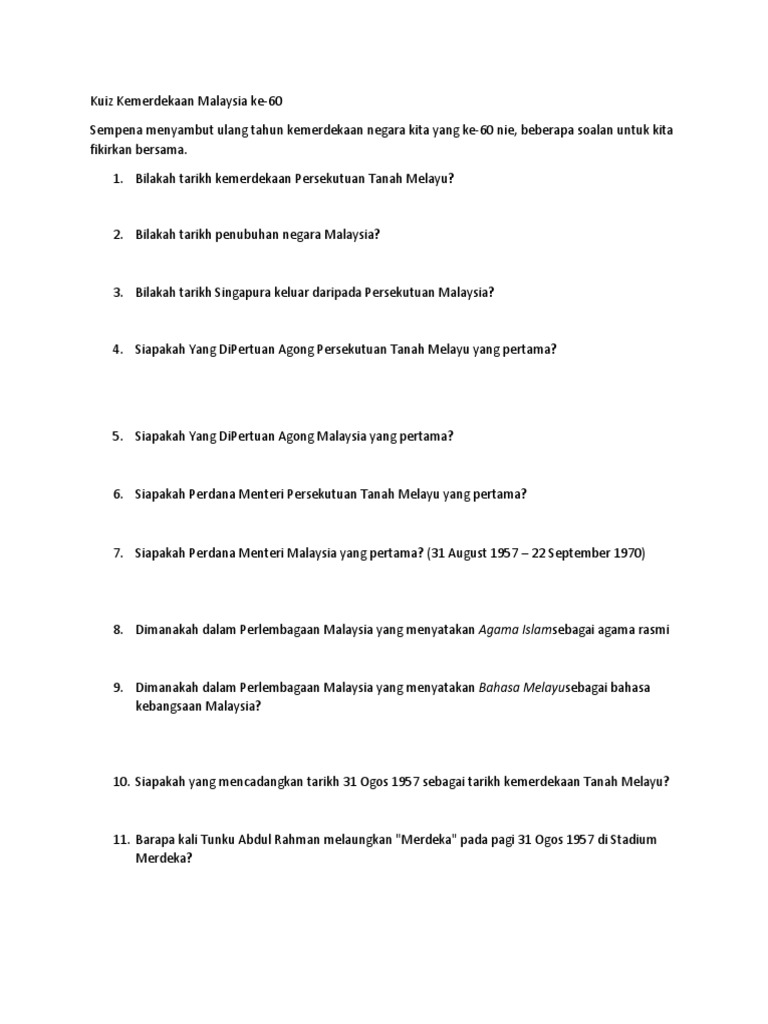 Kuiz Kemerdekaan Malaysia Ke Docx