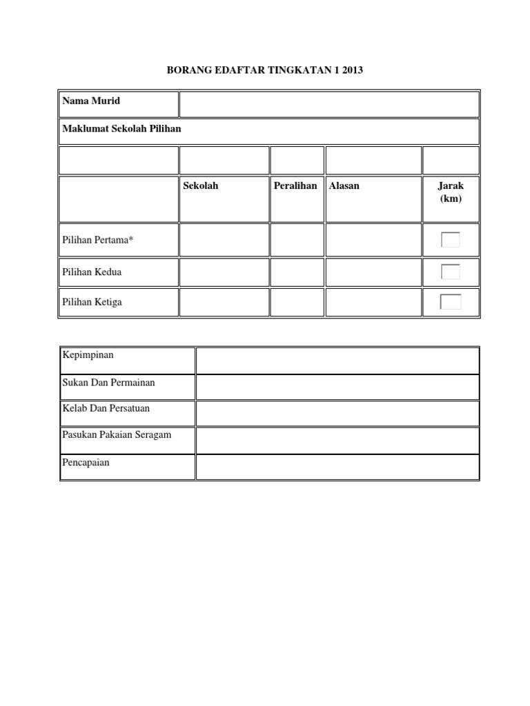 Borang Kosong E Daftar Menengah