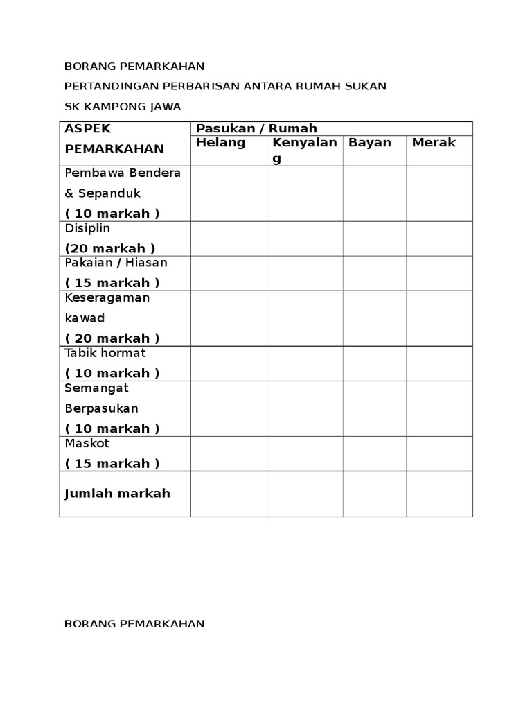 Borang Pemarkahan Perbarisan Doc
