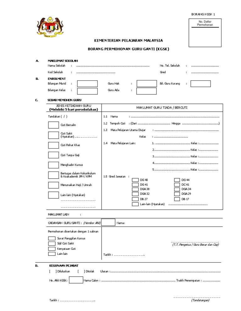 Borang Permohonan Guru Ganti Sekolah Menengah Dan Rendah Pendidikanmalaysia Com