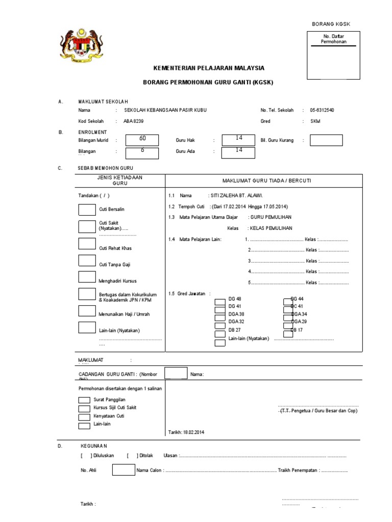 Borang Permohonan Bagi Jawatan Guru Ganti Kgsk 6ngek6e7pklv