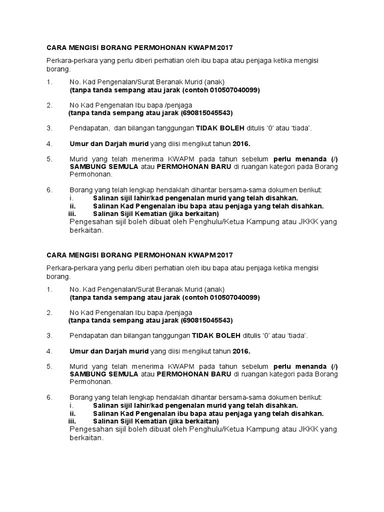 Cara Mengisi Borang Permohonan Kwapm 2017