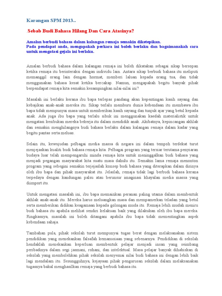 Modul Karangan Stpm Tahun Lepas Doc Teknik Menulis Karangan Cemerlang Stpm Langkah 1 Membaca Soalan Amalan Berbudi Bahasa Amat Penting Dan Perlu Course Hero