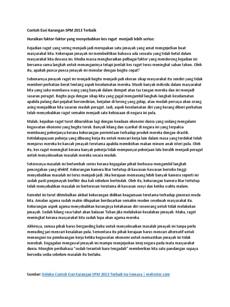Contoh Esei Karangan Spm 2013 Terbaik Huraikan Faktor Faktor Yang Menyebabkan Kes Ragut Menjadi Lebih Serius