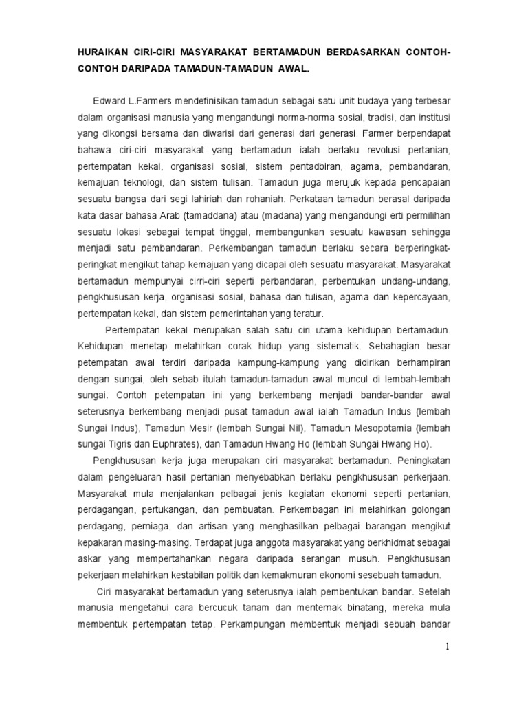 Ciri Ciri Masyarakat Bertamadun Berdasarkan Pandangan Sarjana Barat Dan Sarjana Islam Dengan Beberapa Contoh Yang Sesuai