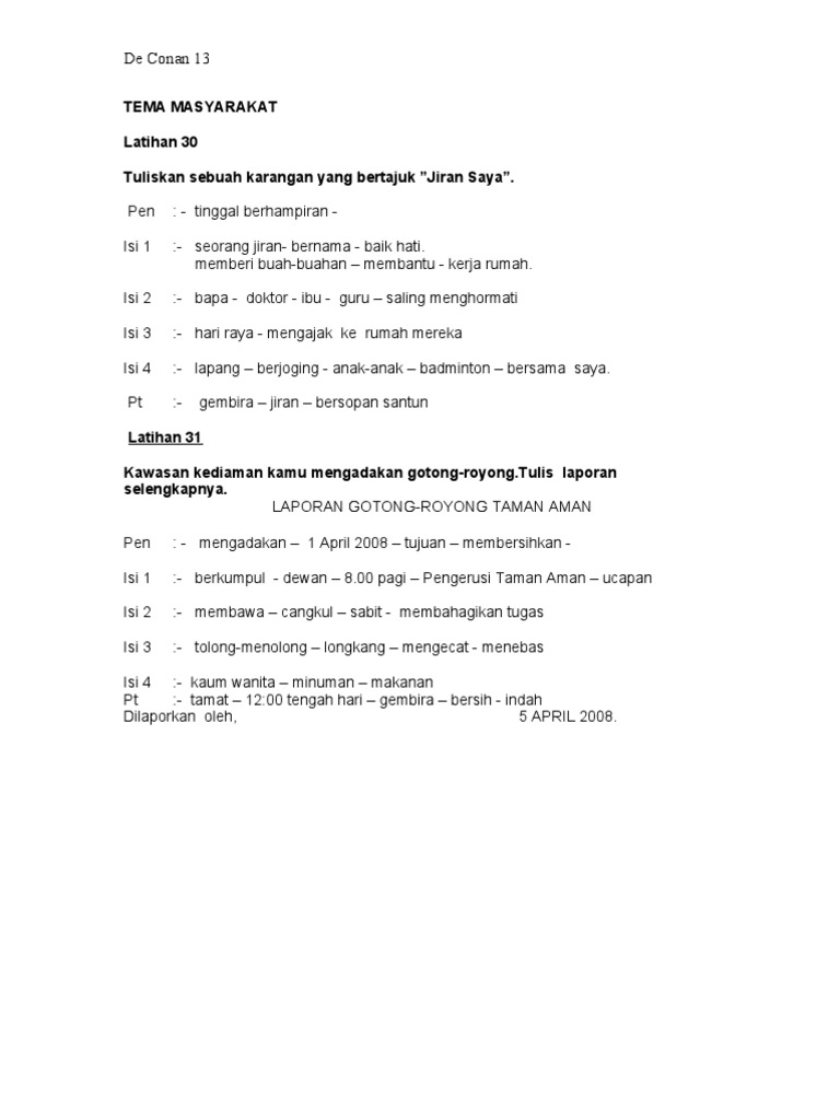 De Conan 13 Tema Masyarakat Latihan 30 Tuliskan Sebuah Karangan Yang Bertajuk Jiran Saya