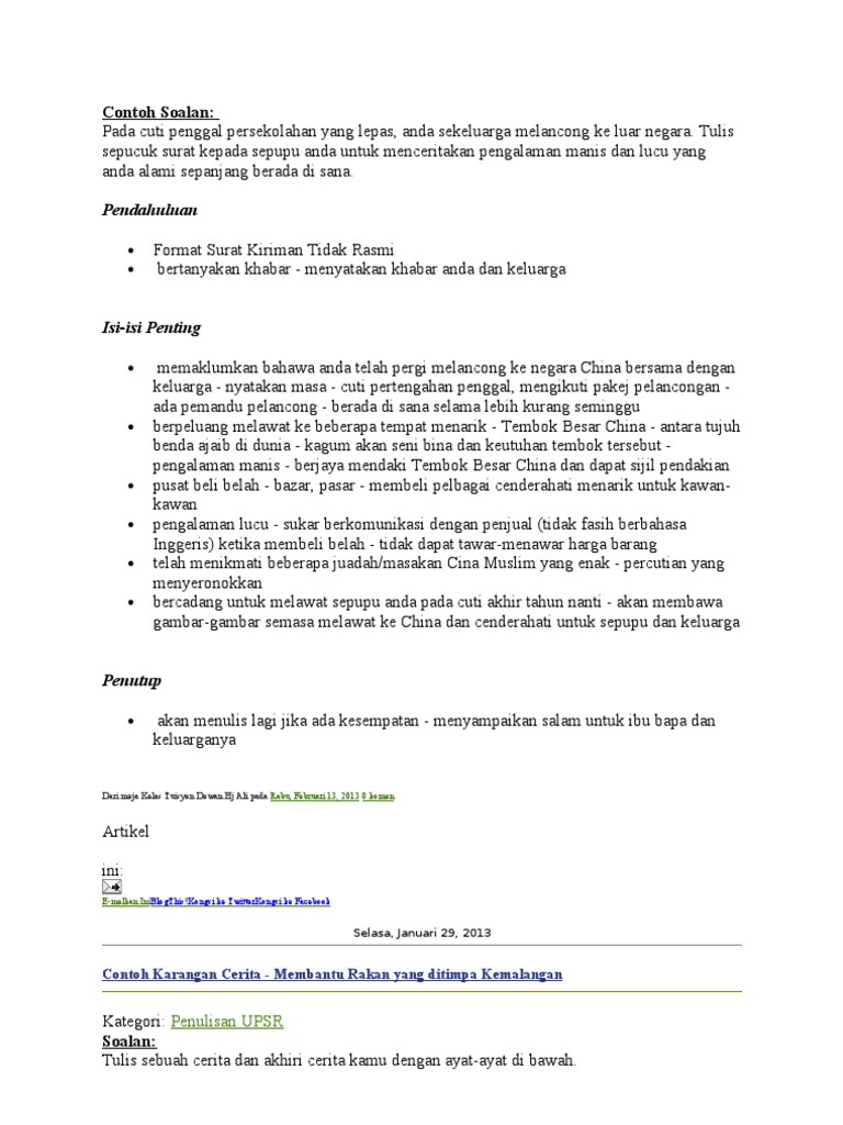 Karangan Spm Contoh Karangan Surat Tidak Rasmi 12