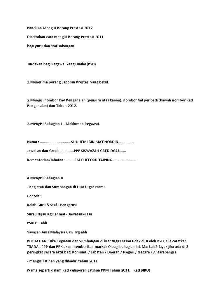 Panduan Mengisi Borang Prestasi