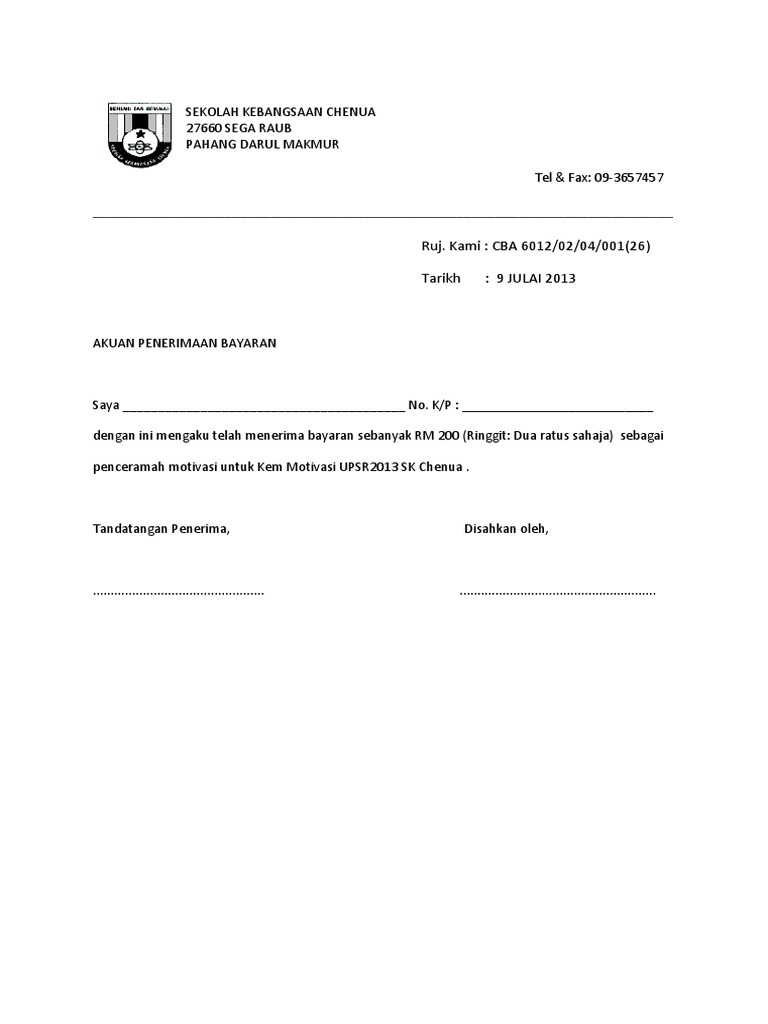 Surat Akuan Penerimaan Wang Bayaran Pdf Document