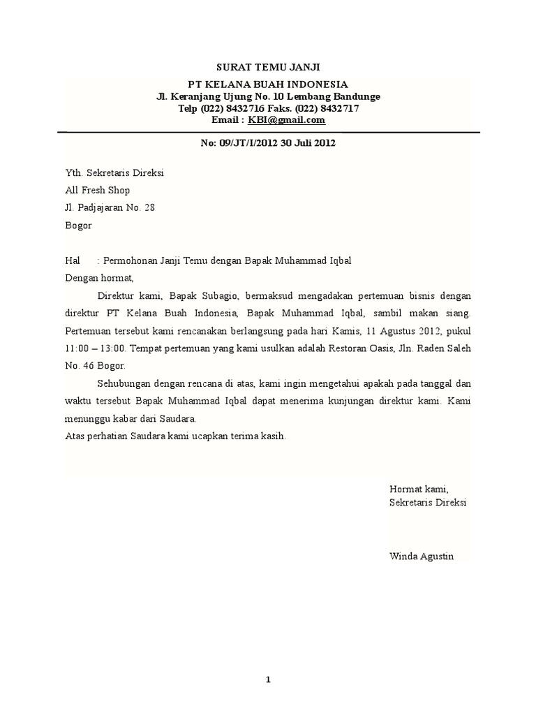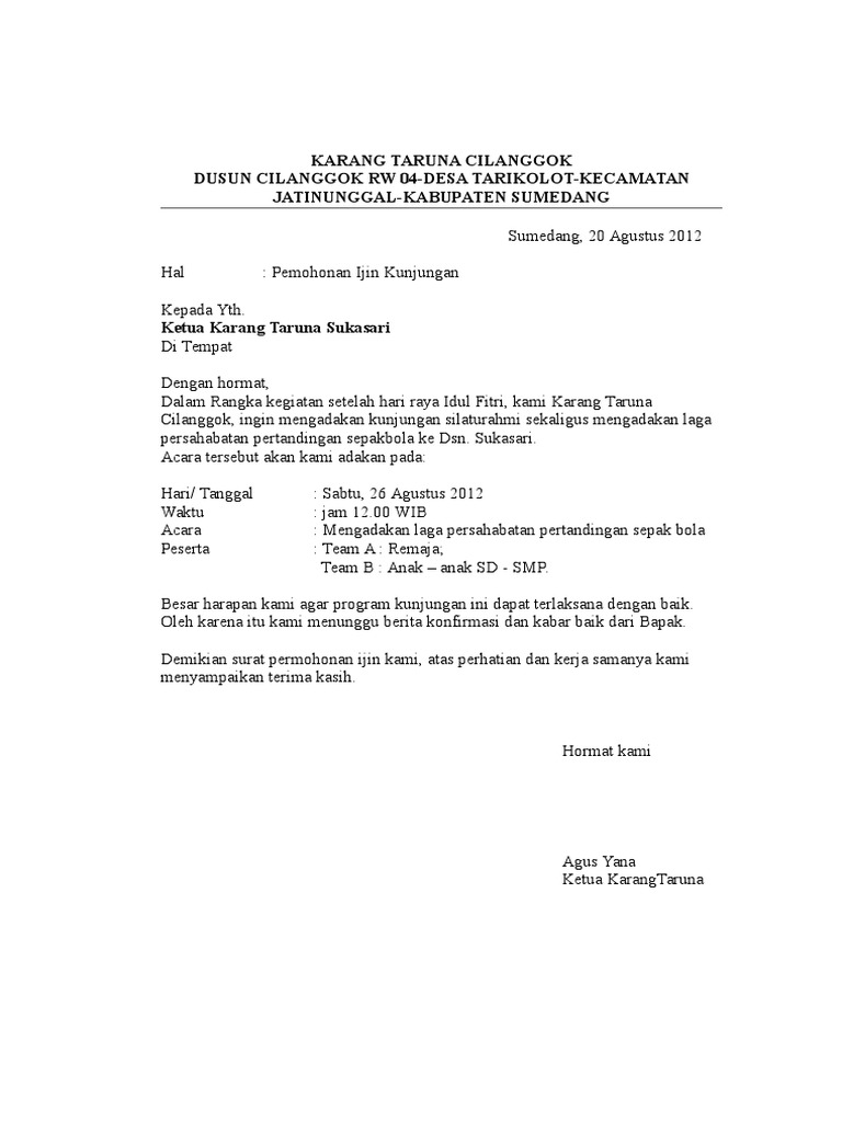 Contoh Surat Permohonan Kunjungan Ke Monjaya