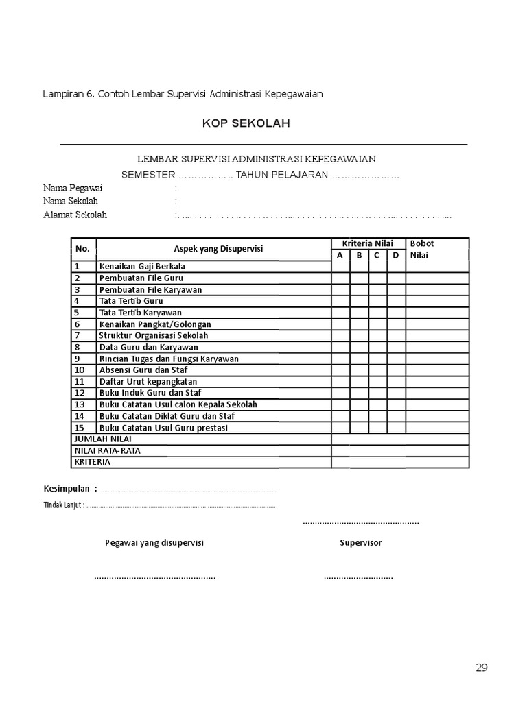 Instrumen Supervisi Tenaga Administrasi Sekolah Doc