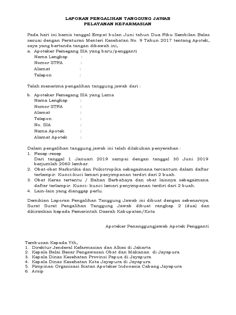 Contoh Surat Serah Terima Tugas Dan Tanggung Jawab