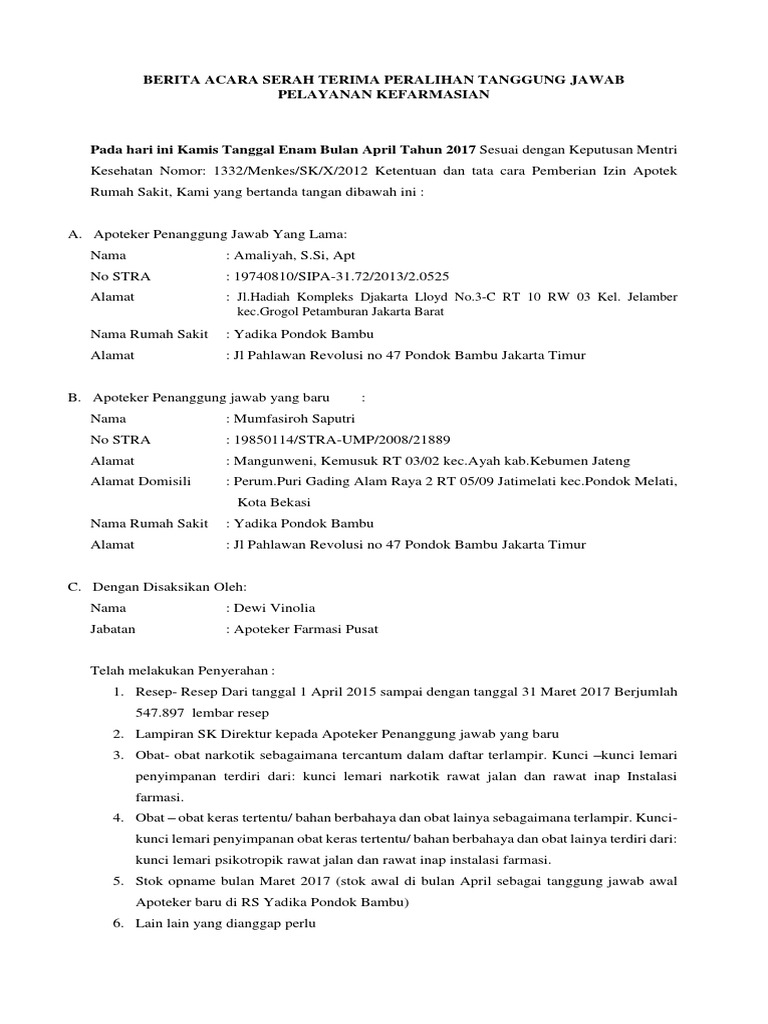 Dengan dibuatnya surat ini maka serah terima. Dalam proses serah terima pekerjaan anda akan membutuhkan surat dan berita acara sebagai bentuk resmi perpindahan tanggung jawab pekerjaan. Soalan semasa induksi ni ada sama dengan cpd ke. Terkait contoh berita acara serah terima jabatan kepala dinas contoh surat serah terima unit kendaraan.
