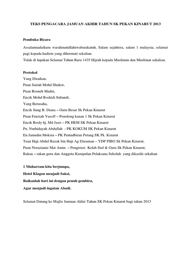 Teks Ucapan Pengacara Majlis Pendaftaran Tingkatan 1 Docx