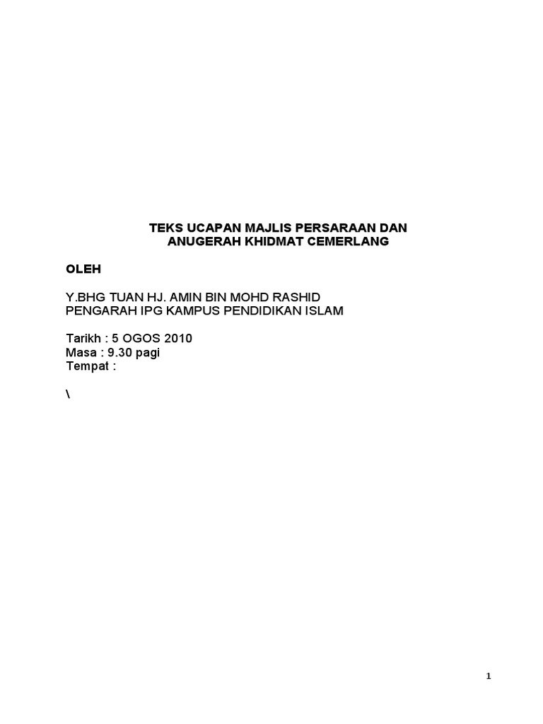 Teks Ucapan Persaraan