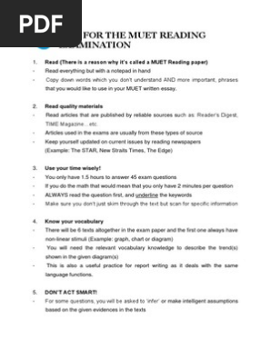 Tips For The Muet Reading Examination Vocabulary Test Assessment