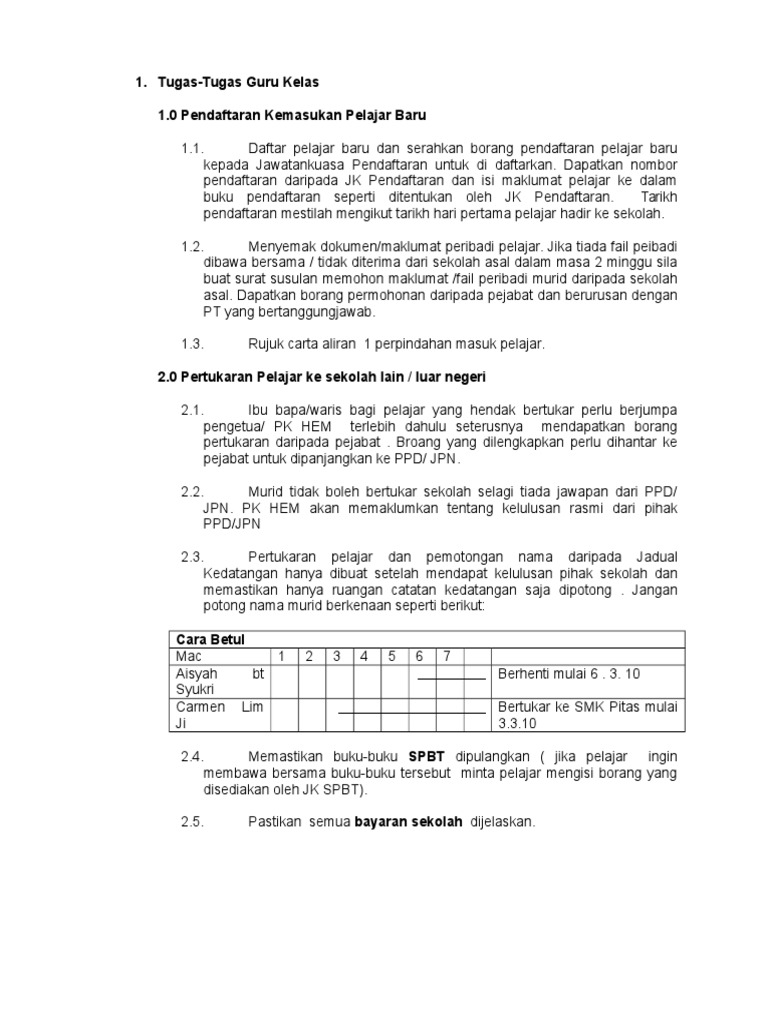 1 Tugas Tugas Guru Kelas 1 0 Pendaftaran Kemasukan Pelajar Baru