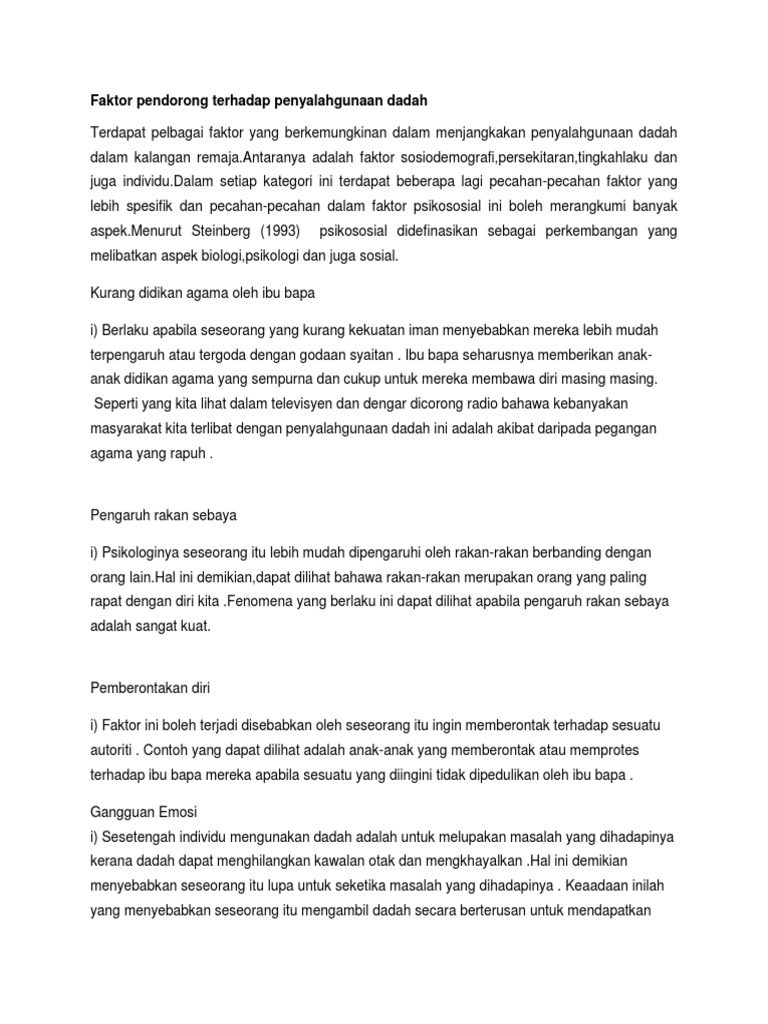 Penyalahgunaan Dadah Dalam Kalangan Remaja Pdf Document