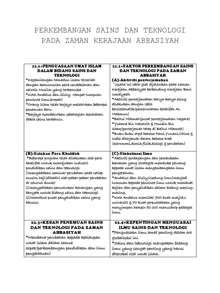 Pendidikan Islam Tingkatan 5 Perkembangan Sains Dan Teknologi Pada Zaman Kerajaan Abassiyah