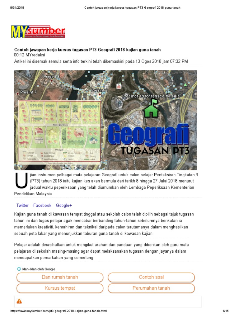 Contoh Jawapan Kerja Kursus Tugasan Pt3 Geografi 2018 Guna Tanah
