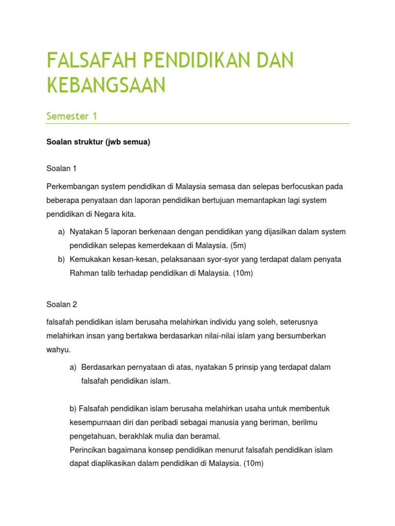 Doc Pelaksanaan Falsafah Pendidikan Kebangsaan Mamat Jusoh Academia Edu